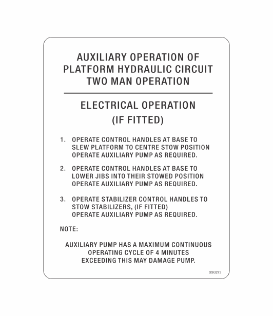 AUXILIARY OPERATION OF PLATFORM HYDRAULIC CIRCUIT TWO MAN OPERATION - 100mmx130mm